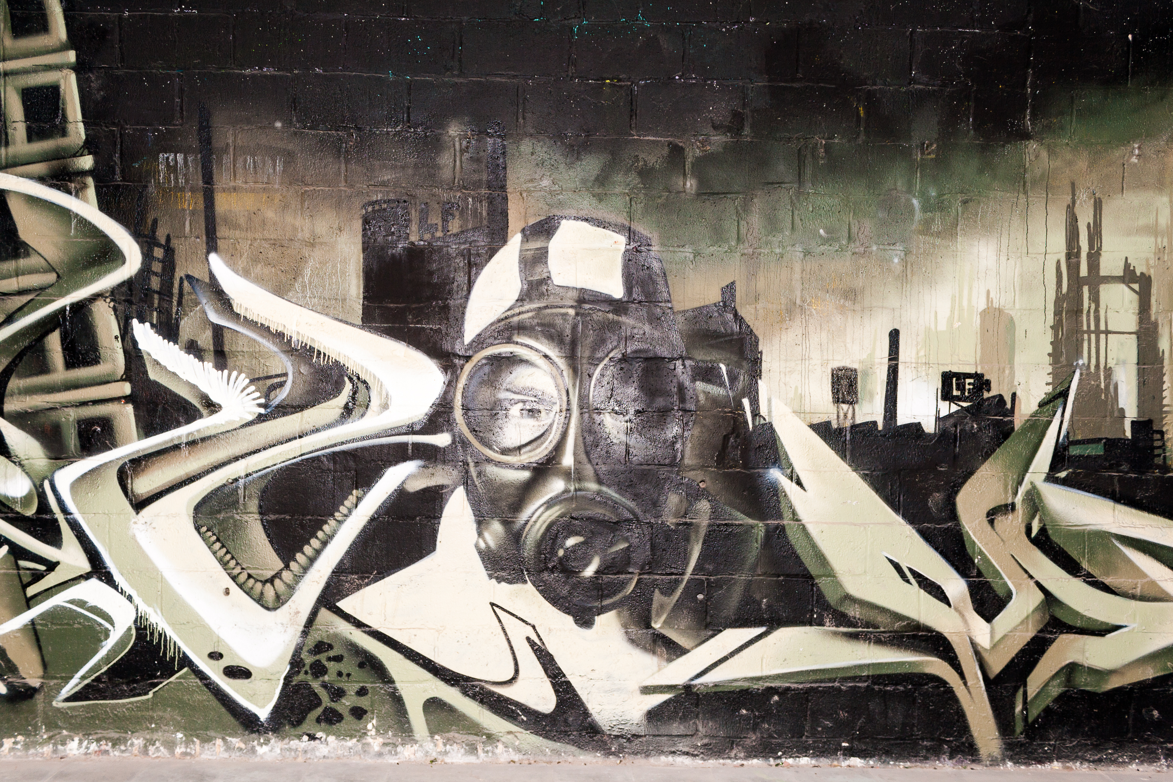 graffiti wall in an abandoned factory building